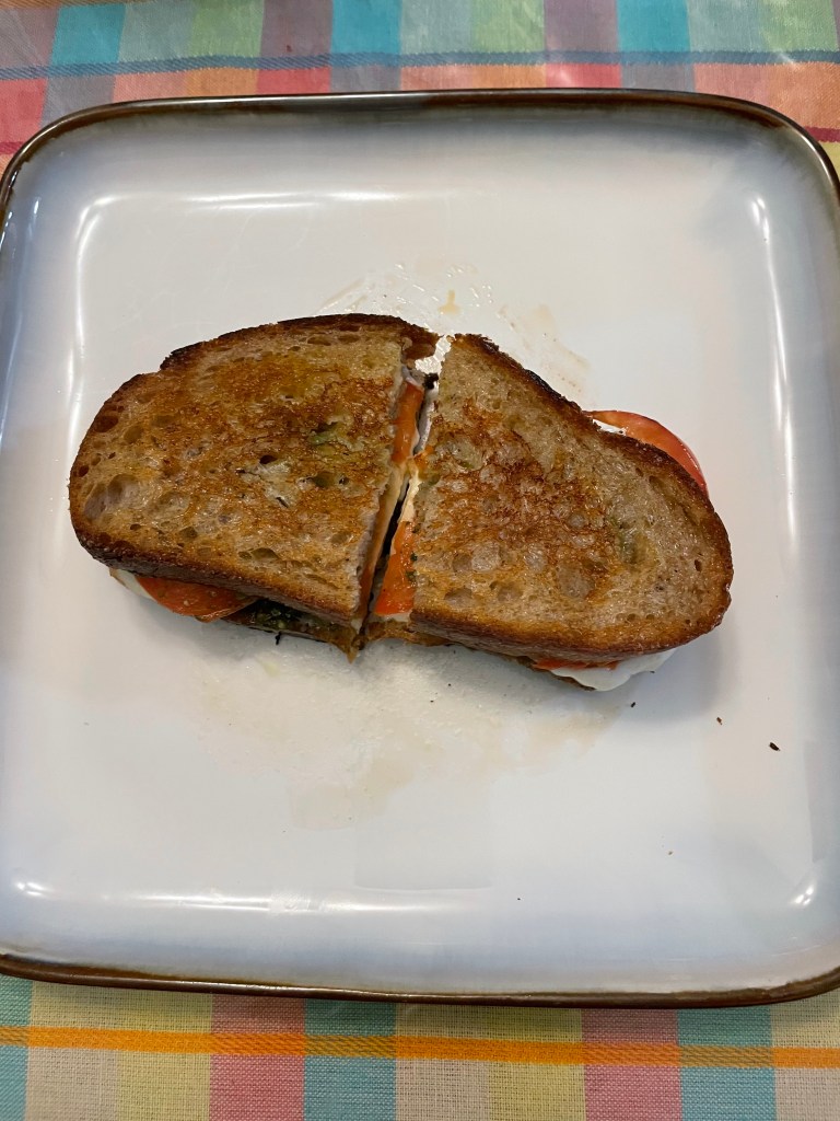 I’ve altered this recipe. I thought it would taste better if the bread were toasted. So I used a panini grill for a couple minutes. The recipe originally called for softened butter. I don’t like eating raw butter. Plus it called for mayonnaise at the same time as the butter.