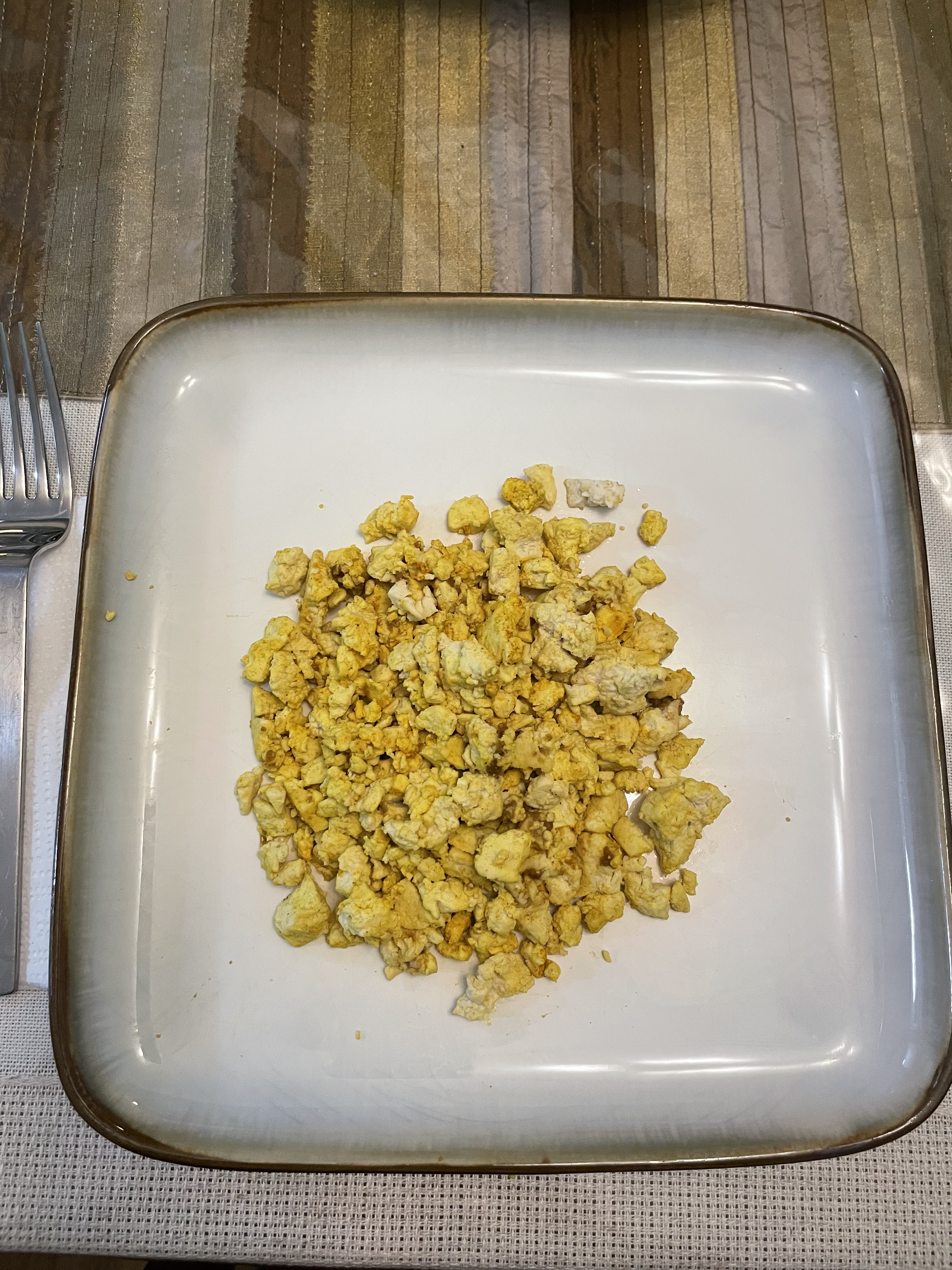 Using the recipe in Fridge Love I was able to cook the Tofu Eggs dinner as seen in the photo above. The tofu eggs taste better than the old way with sesame oil.